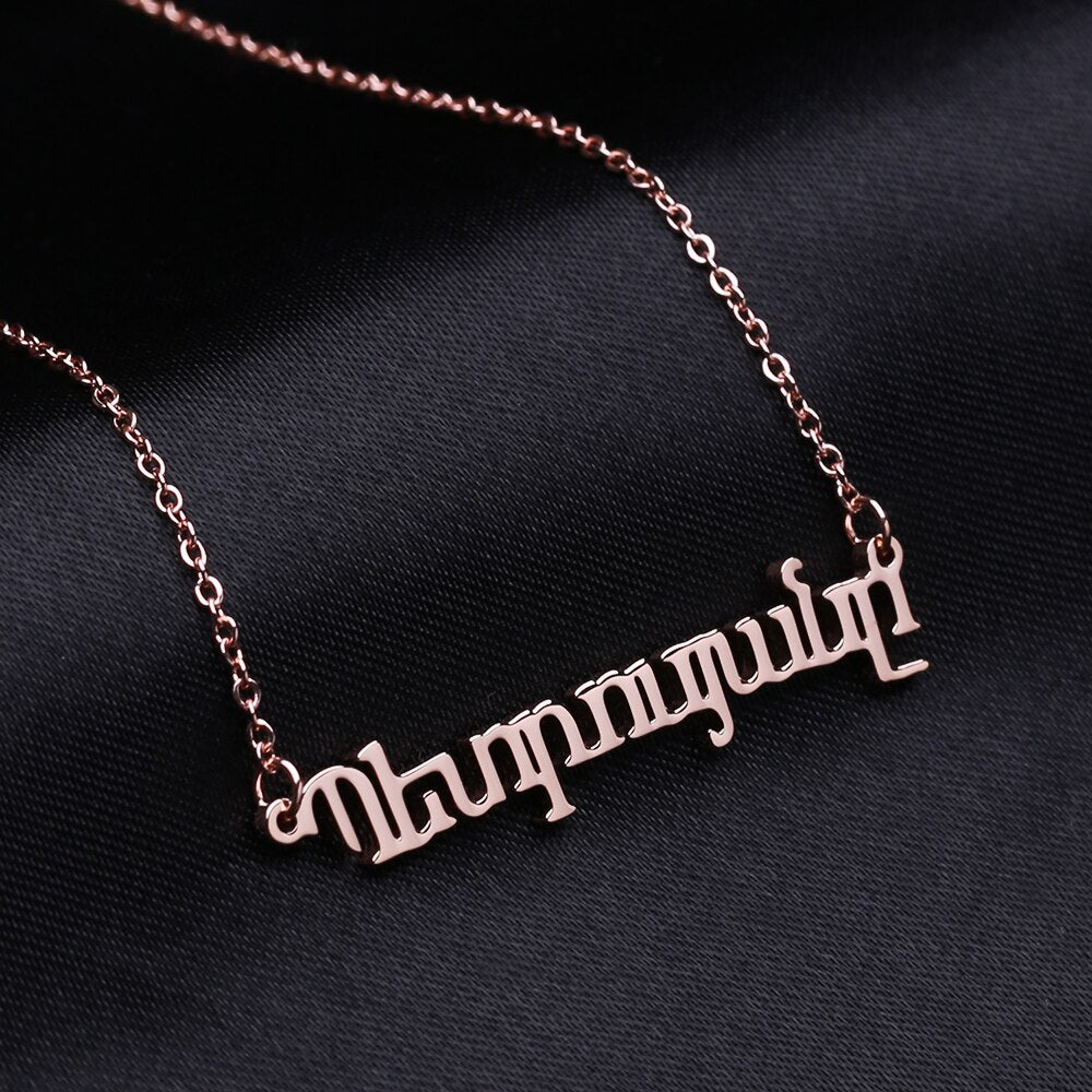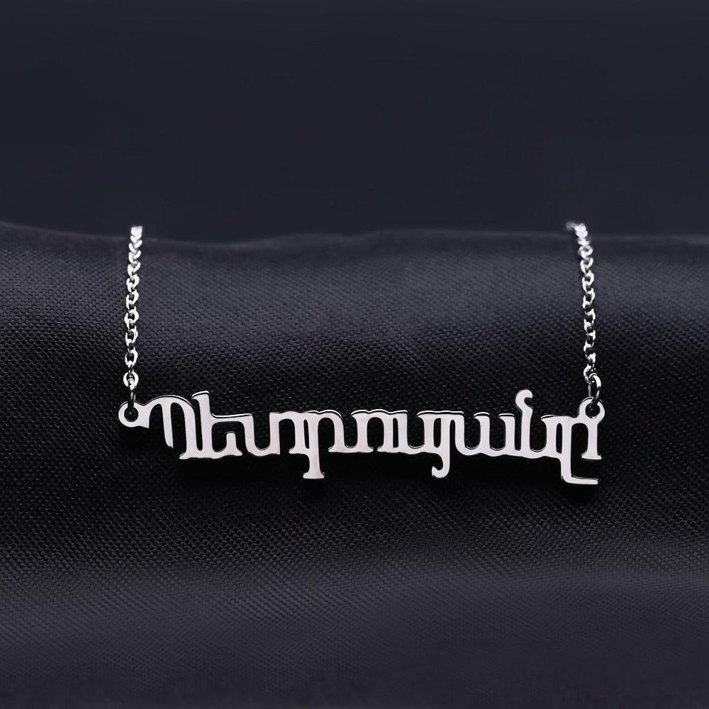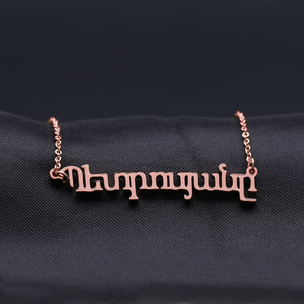 This beautiful necklace features your name delicately inscribed in Armenian lettering. Choose from sterling silver, gold, or rose gold plating for a touch of elegance. A perfect gift for yourself or someone special, this unique piece is sure to become a treasured keepsake.