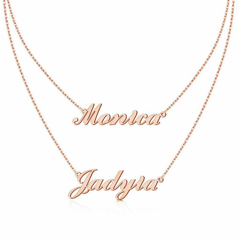 Whether it's the name of your kids, your name and your spouse's, or a gift to a newlywed couple, this unique double name layered necklace is sure to combine beauty and meaning in one personalized necklace in the most elegant way. This necklace makes a perfect gift for birthdays, anniversaries and special occasions — a memory that will last a lifetime. Get in a choice of stunning gold, rose gold or platinum plated finish!