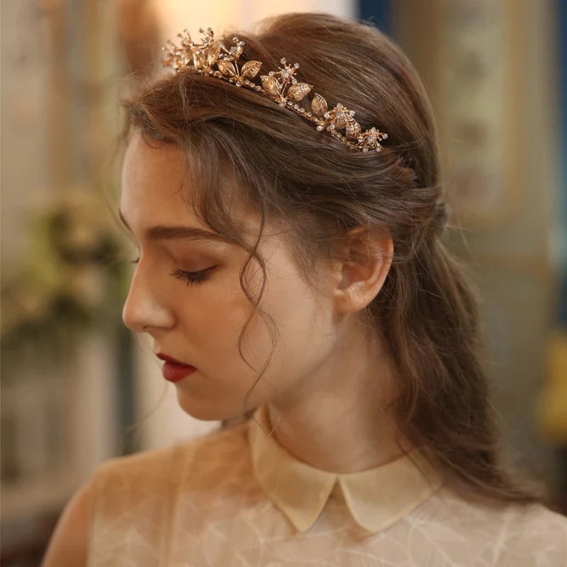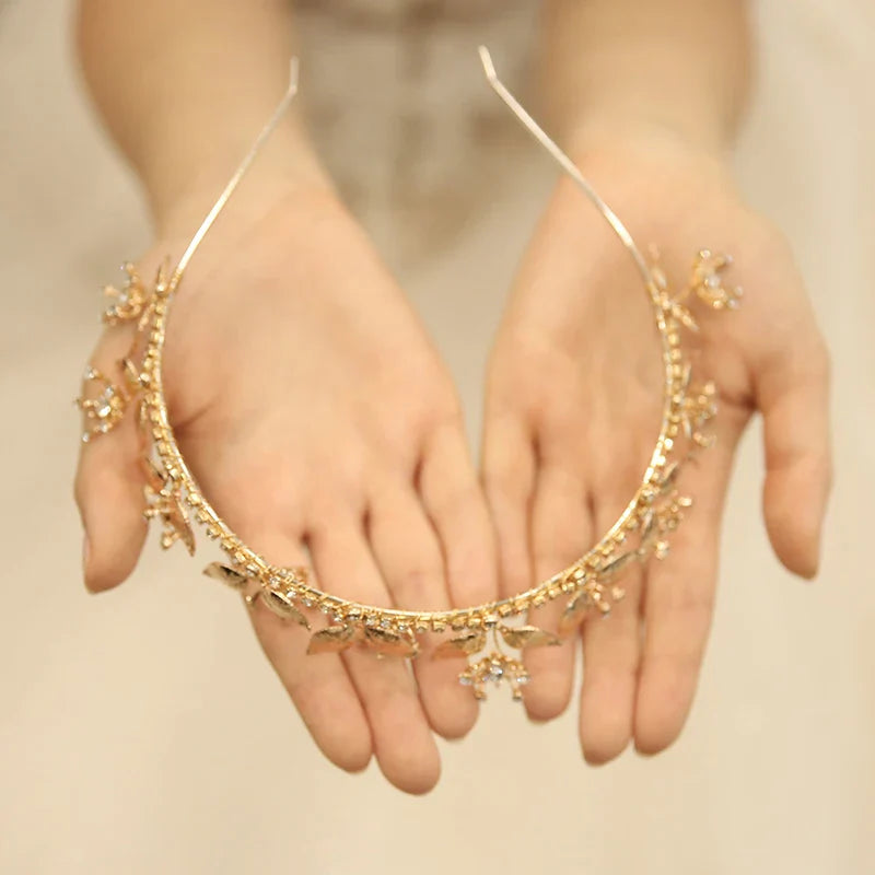 The Aurora Headband’s golden hue complements a variety of bridal styles, from modern chic to vintage-inspired glamour. As you walk down the aisle, its gentle shimmer will catch the light, enhancing your natural glow and adding a magical touch to your bridal ensemble.
