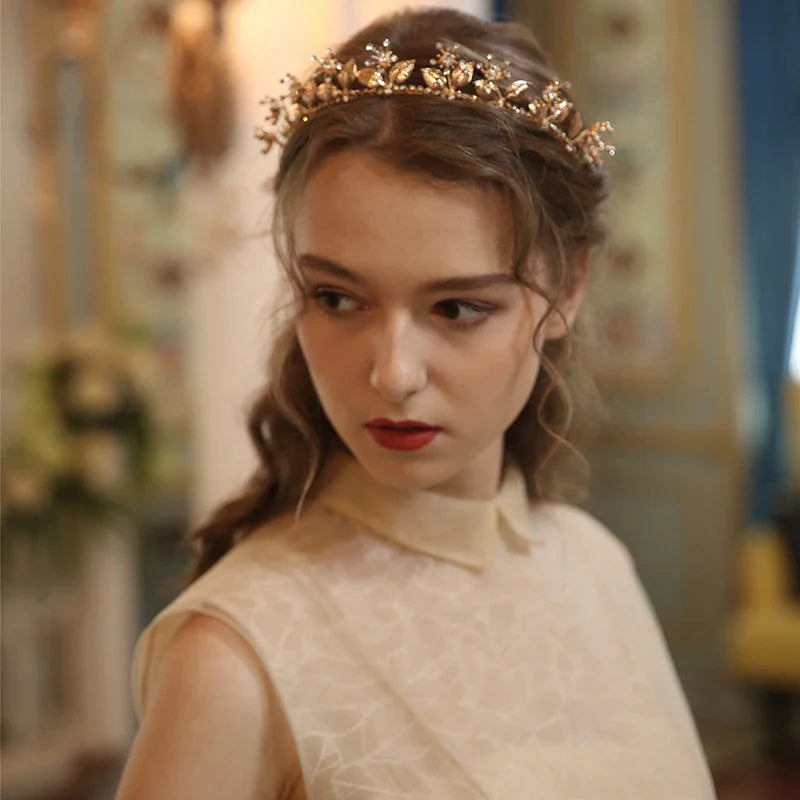 The Aurora Gold Floral Bridal Headband is a captivating accessory that brings a touch of golden elegance to your wedding day look. Inspired by nature's beauty, its intricate floral design is crafted with delicate golden leaves and blossoms, creating a radiant yet graceful statement.