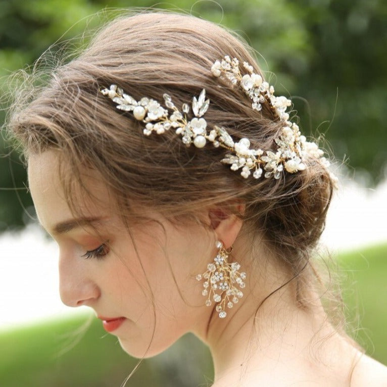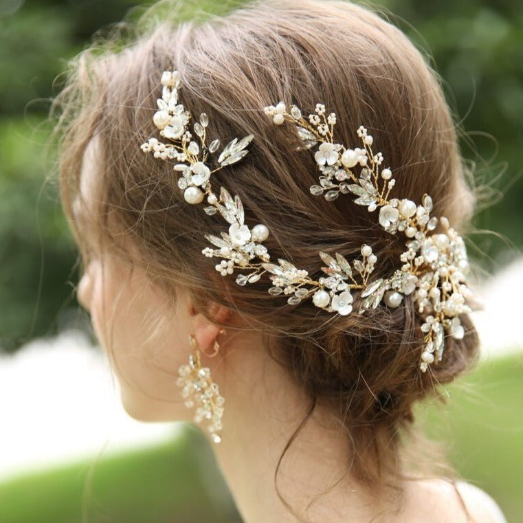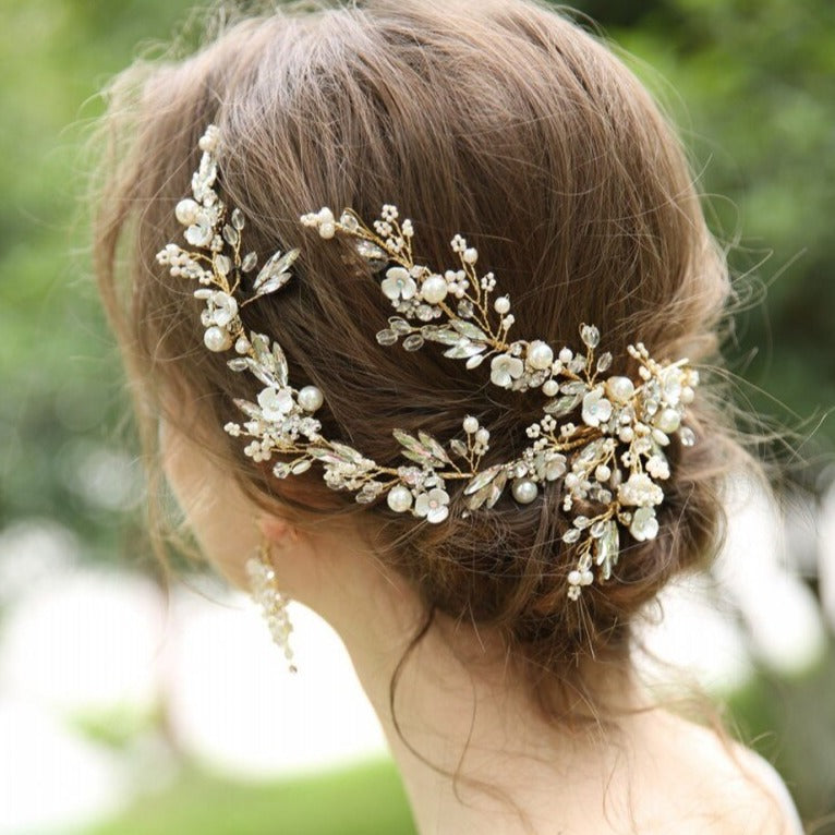Designed with versatility, the Marina Hair Vine can be styled to suit any look. Wear it through a braided updo or let it cascade through loose curls for a romantic, bohemian vibe. Lightweight and flexible, it’s easy to position and secure, making it ideal for all-day comfort on your special day.