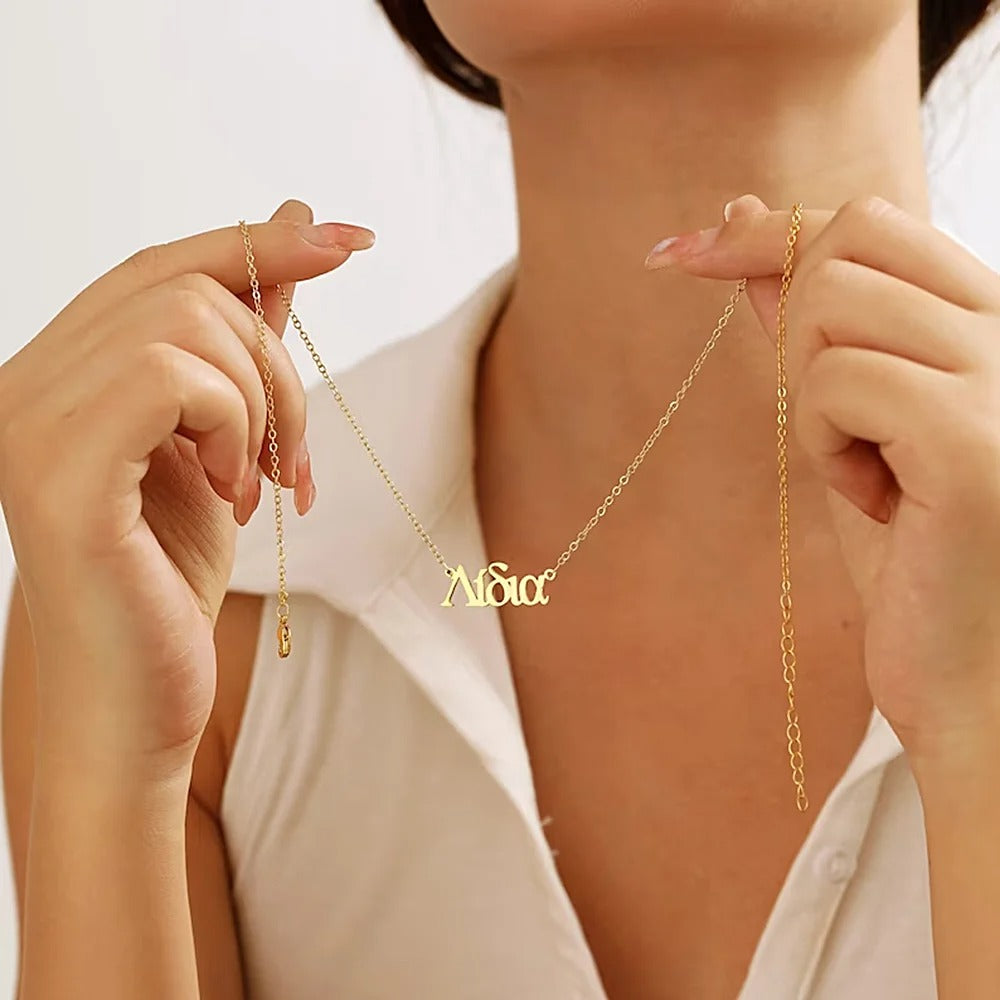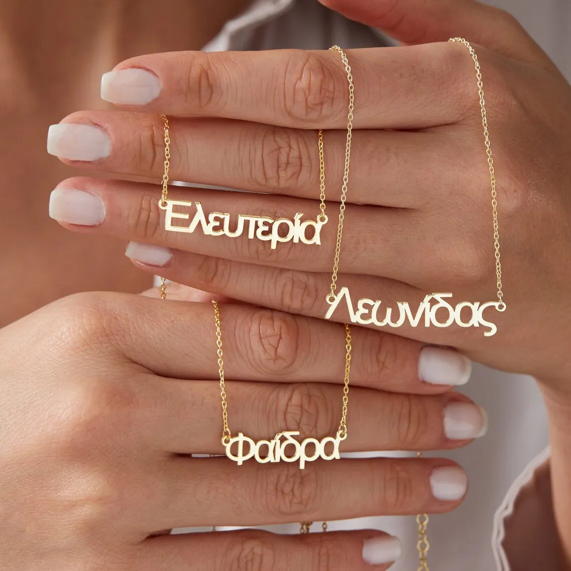 What is your Greek name? How cool would it be to have a necklace with your name in the Greek language? Inspired by Greek culture and finesse, we took personalised jewellery to a new level! The necklace is handcrafted and 18K gold plated.