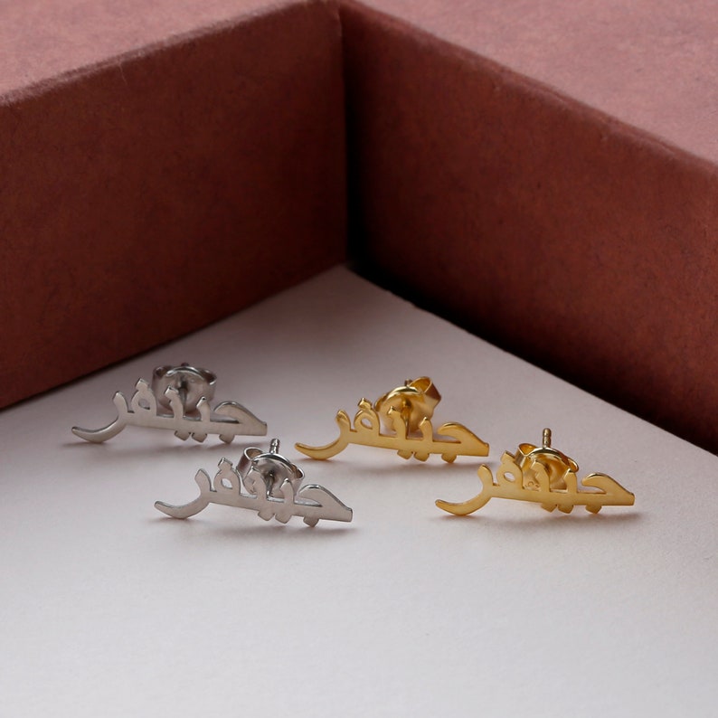 These Personalised Arabic Name Stud Earrings make the perfect gift for birthdays, anniversaries and special occasions — a memory that will last a lifetime.